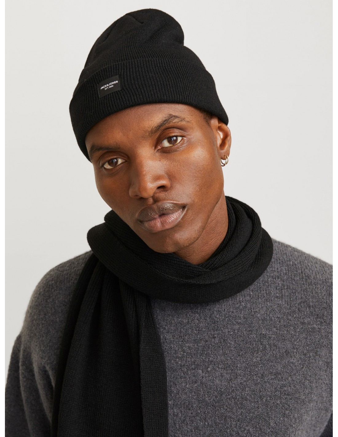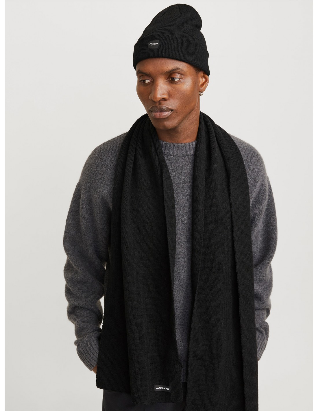 JACK & JONES JAC BEANIE Y BUFANDA COLOR NEGRO - SUAVE Y TRANSPIRABLE