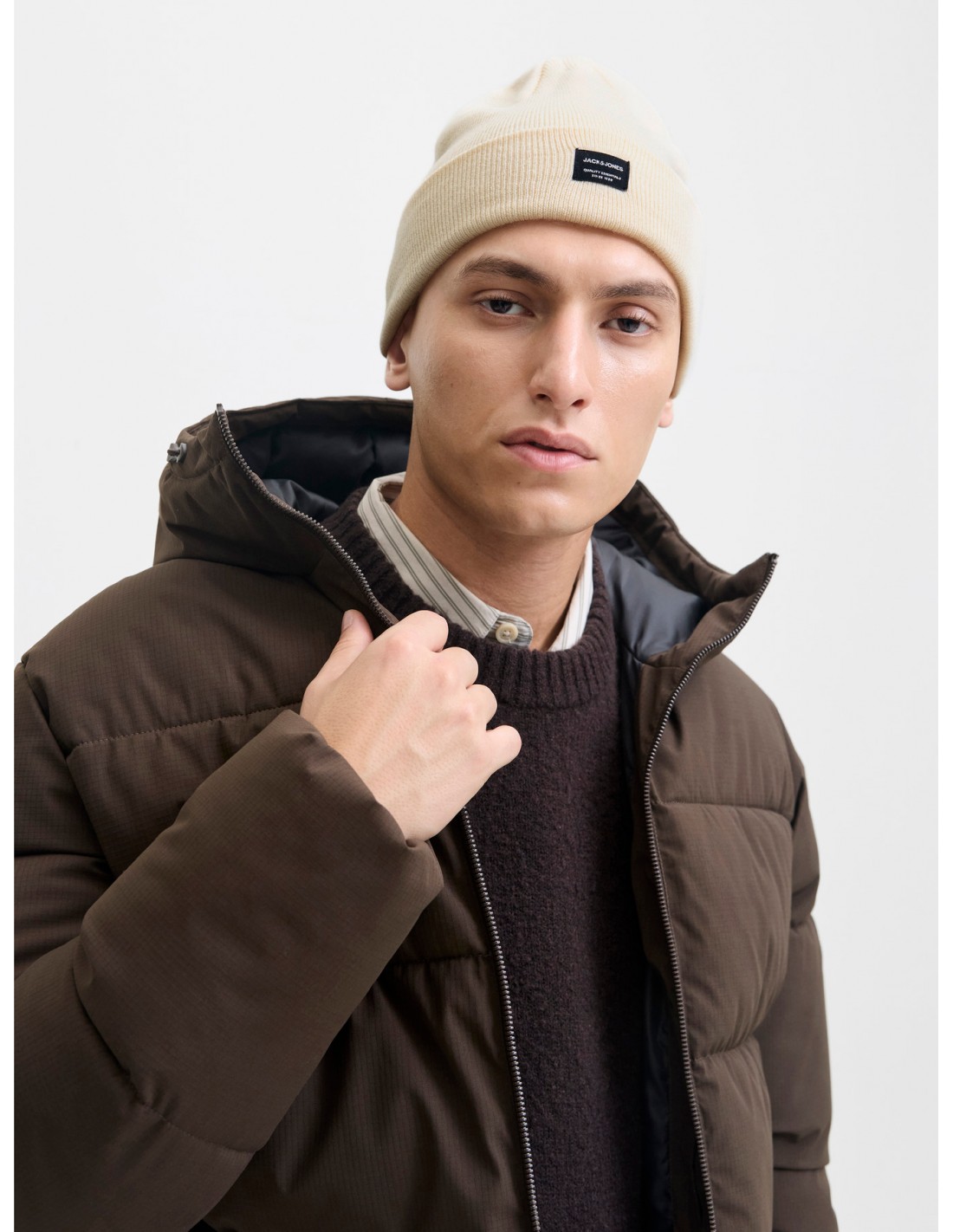 JACK & JONES DNA BEANIE COLOR BLANCO ROTO - SUAVE Y CÓMODO