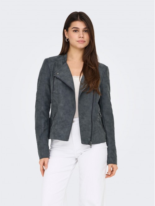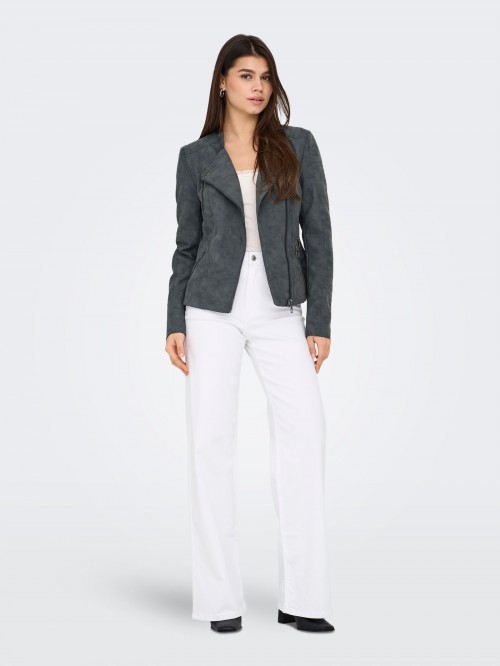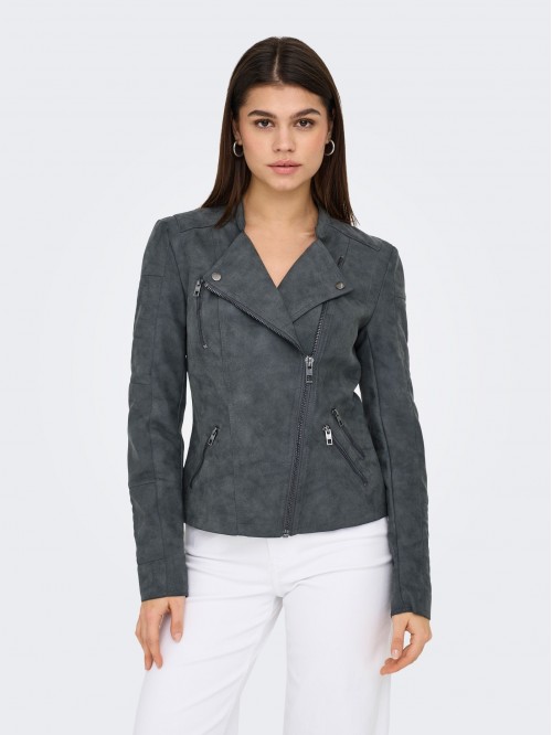 Only AVA Biker de cuero sintético Color Gris - Cómoda e ideal para cualquier ocasión