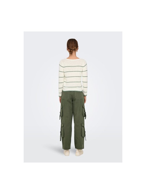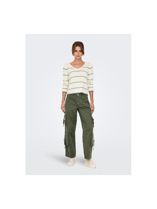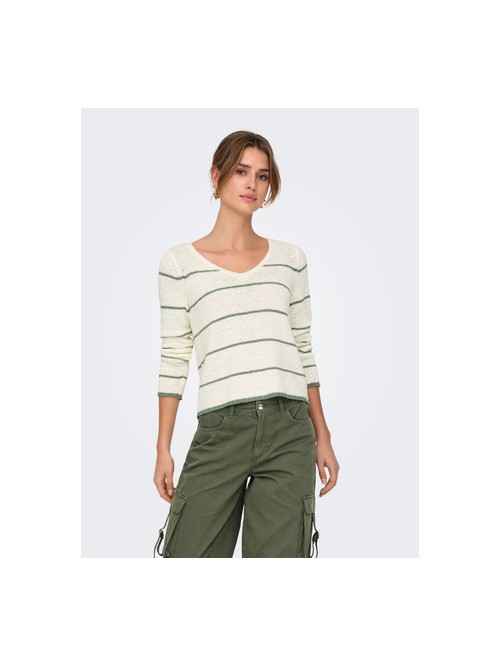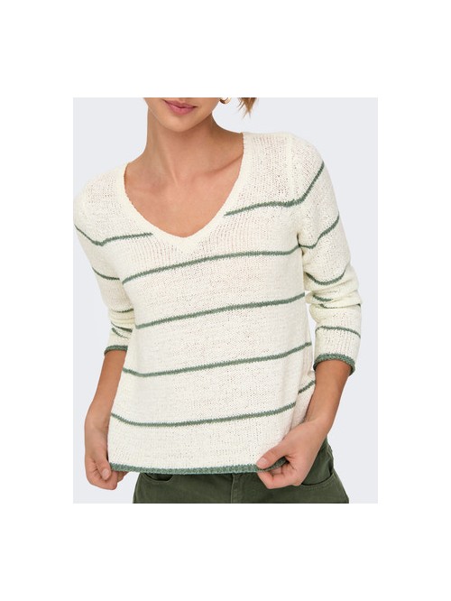 Only GEENA Jersey de punto cuello en V Color Blanco rayas verdes - Suaves, perfectas para cualquier ocasión y época del año